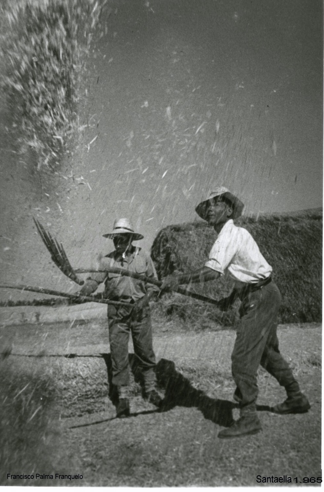 Para separar el grano de la paja, del montón de paja y grano mezclados se iba cogiendo con el "bielgo", y se dejaba caer vez desde lo mas alto que se pudiese, girando el "bielgo" hacia donde venia el aire para que este, se llevase la paja y el grano opusiese cierta resistencia a él y cayese verticalmente.